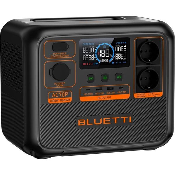 BLUETTI PREMIUM AC70P PORTABLE POWER STATION, 1000W AC OUTLET 864WH (TLS.133746)