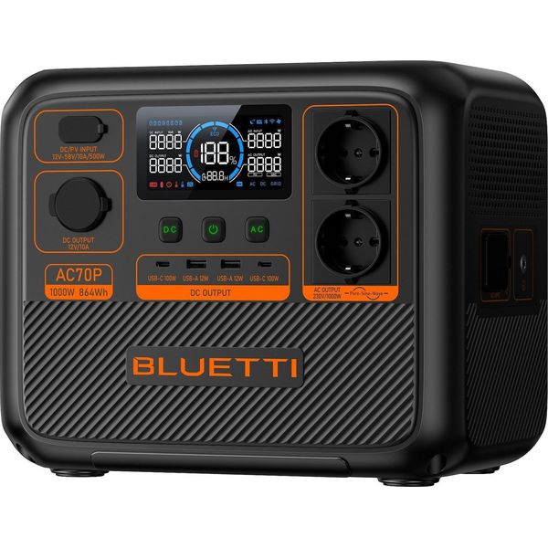 BLUETTI PREMIUM AC70P PORTABLE POWER STATION, 1000W AC OUTLET 864WH