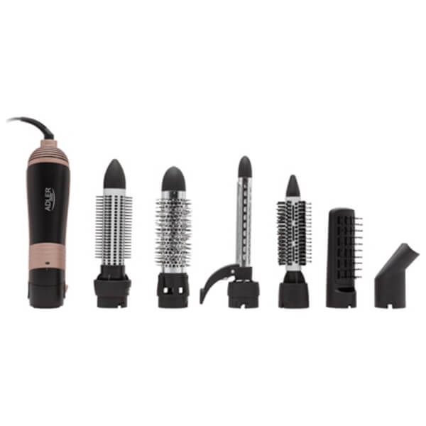 • Εναλλάξιμα προσαρτήματα: Βούρτσα διαμέτρου 34mm, βούρτσα διαμέτρου 30mm με αναδιπλούμενα δόντια, βούρτσα διαμέτρου 21mm, σίδερο για μπούκλες με κλιπ διαμέτρου 20 mm, χτένα, συγκεντρωτής.