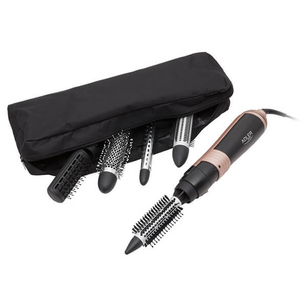 Εναλλάξιμα προσαρτήματα: Βούρτσα διαμέτρου 34mm, βούρτσα διαμέτρου 30mm με αναδιπλούμενα δόντια, βούρτσα διαμέτρου 21mm, σίδερο για μπούκλες με κλιπ διαμέτρου 20 mm, χτένα, συγκεντρωτής.