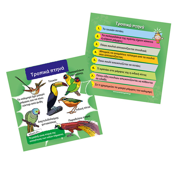 Γεμάτο με πληροφορίες για την χλωρίδα και την πανίδα από όλον τον κόσμο, αυτό το BrainBox είναι ειδικά σχεδιασμένο να βοηθάει τους παίκτες να βελτιώσουν την παρατηρητικότητα και τις μνημονικές τους ικανότητες. Κάθε κάρτα περιλαμβάνει διαφορετικές εικόνες από τη φύση. Από τα σαρκοφάγα φυτά ως τα αρπακτικά πουλιά στον Αμαζόνιο, αυτό το υπέροχο παιχνίδι προσφέρει διασκέδαση και γνώση προς όλη την οικογένεια. Σκοπός του παιχνιδιού, μάζεψε τις περισσότερες κάρτες μέσα σε 10 λεπτά.