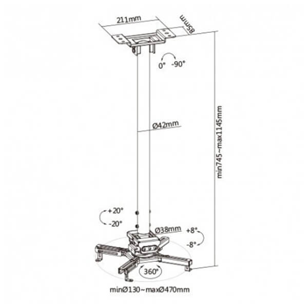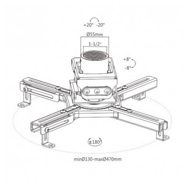 Βάση στήριξης προτζέκτορα οροφής με περιστρεφόμενο άξονα 360° και δυνατότητα ρύθμισης γωνίας, για την επίτευξη της ιδανικής γωνίας προβολής.