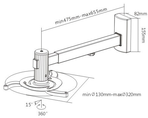 BRATECK PRB-5 ALUMINUM SHORT THROW PROJECTOR WALL MOUNT PER.181186 PER.181186 BRATECK BRATECK ACCESSORIES ΠΡΟΒΟΛΕΩΝ Κατηγορία: ACCESSORIES ΠΡΟΒΟΛΕΩΝ •BRATECK στην κατηγορία ACCESSORIES ΠΡΟΒΟΛΕΩΝ Η PRB-5 είναι μια βάση στήριξης τοίχου από αλουμίνιο για τους Short Throw προβολείς μέχρι 10kgs / 22Ibs. Με περιστροφή 360 ° και 15 ° κλίση επιτρέπει τη μέγιστη δυνατότητα θέασης. Προσφέρει ευέλικτη τοποθέτηση προβολέα με τέσσερις ρυθμιζόμενους βραχίονες στήριξης που μπορεί να χωρέσει ένα ευρύ φάσμα των οπών στήριξης. Ο σύνδεσμος ταχείας απελευθέρωσης επιτρέπει στον προβολέα να εγκατασταθεί γρήγορα και στη συνέχεια απελευθερώνεται εύκολα για συντήρηση, χωρίς την εκ νέου ευθυγράμμιση. Το ρυθμιζόμενο μήκος μπορεί να ανταποκριθεί στις διαφορετικές ανάγκες. Με διακοσμητικό πλαστικό κάλυμμα για να έχει μια ωραία εμφάνιση. Χαρακτηριστικά: • Υλικό: Αλουμίνιο, χάλυβας• Χρώμα: Ασημί, Μαύρο• Εγκατάσταση: Οροφής• Αντοχή Βάρους: 10kg / 22lbs• Εμβέλεια τοποθέτησης: 130 ~ 320 χιλιοστά• Κλίση: -15 ° ~ + 15 °• Περιστροφή: 360 °• Προφίλ: 475-655mm• Ρυθμιζόμενο μήκος: Ναι• Εγγύηση: 2 χρόνια. DOA 7 ημερών