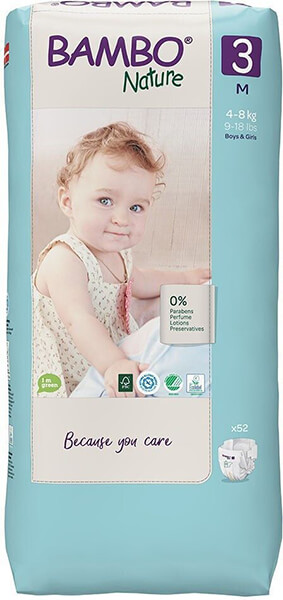 Όλες οι πάνες Bambo Nature είναι απαλλαγμένες από άρωμα και parabens ελαχιστοποιώντας τον κίνδυνο αλλεργίας ή ερεθισμού του δέρματος.