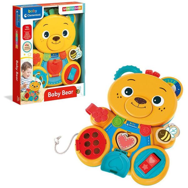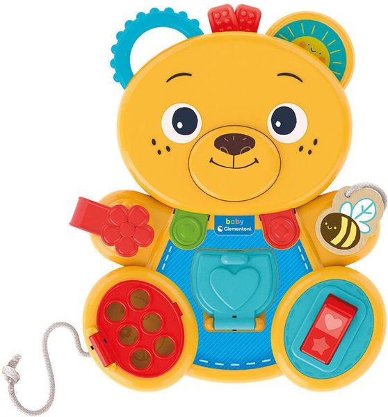 BABY CLEMENTONI στην κατηγορία ΠΑΙΧΝΙΔΙΑ-12-24 ΜΗΝΩΝ Ένα χαριτωμένο αρκουδάκι με σκληρά και απαλά στοιχεία και ξύλινες λεπτομέρειες. Ένα παιχνίδι εμπνευσμένο από τη μέθοδο Mοntessori, γεμάτο δραστηριότητες που έχουν σχεδιαστεί για να εκπαιδεύσουν την επιδεξιότητα ασκώντας τη συγκέντρωση : η κλωστή και οι κουμπότρυπες, ο διακόπτης που κάνει κλικ-κλακ, τα στοιχεία που αλληλοσυνδέονται, το άνοιγμα και το κλείσιμο της ζώνης και πολλά άλλα.