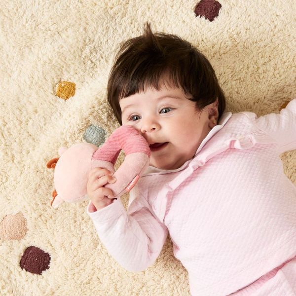 Μια χαριτωμένη κουδουνίστρα αράχνης από σιλικόνη και ύφασμα, με ανάγλυφη οδοντοφυΐα που βοηθάει στην ανακούφιση των συμπτωμάτων της οδοντοφυΐας. Ο δακτύλιος οδοντοφυΐας του παρέχει εύκολο κράτημα και η εσωτερική του κουδουνίστρα διεγείρει και ενθαρρύνει την κίνησή τους. Καθαρίζεται και απολυμαίνεται εύκολα και πλένεται στο πλυντήριο.