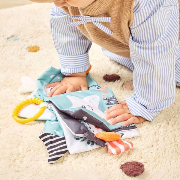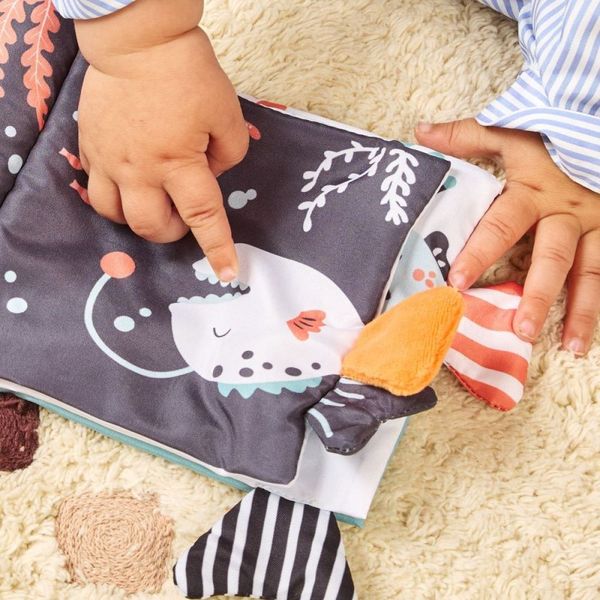 Μια θαλασσινή περιπέτεια γεμάτη υφές, χρώματα και μικρές ανακαλύψεις. Το υφασμάτινο βιβλίο της Miniland με τα θαλάσσια ζωάκια, είναι σχεδιασμένο για να διεγείρει τις αισθήσεις του μωρού σας μέσα από την αφή, το χρώμα και το ελεύθερο παιχνίδι. Με απαλές υφές, χαριτωμένες λεπτομέρειες και παιχνιδιάρικες εικόνες, θα γίνει ο ιδανικός σύντροφος στις πρώτες του εξερευνήσεις στο σπίτι, στο καρότσι ή στο ταξίδι.