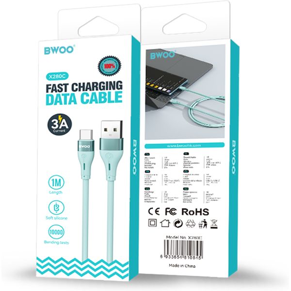 BWOO CABLE X280C MINIMALIST SILICONE 3A USB-A TO USB-C BLUE