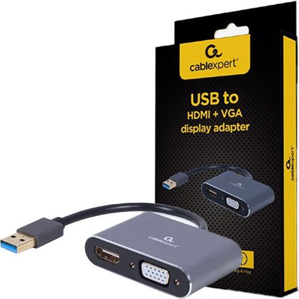 CABLEXPERT 4K USB TO HDMI + VGA DISPLAY ADAPTER SPACE GREY RETAIL PACK A-USB3-HDMIVGA-01 (TEL.234029)