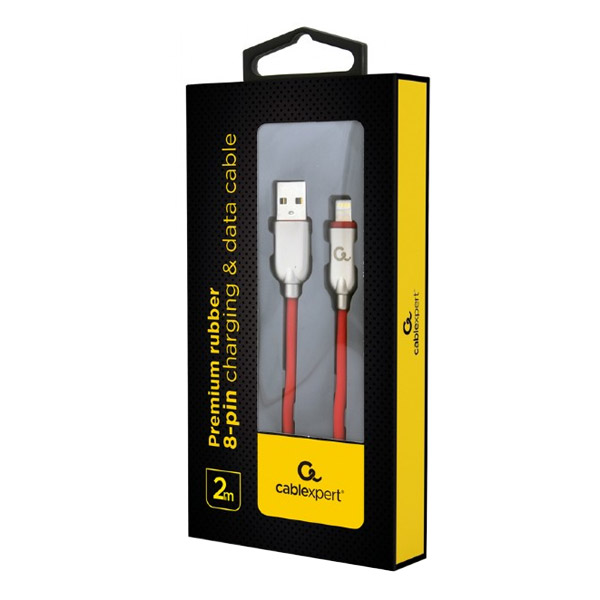 cablexpert cc usb2r amlm 2m r premium rubber 8 pin charging and data cable 2m red photo