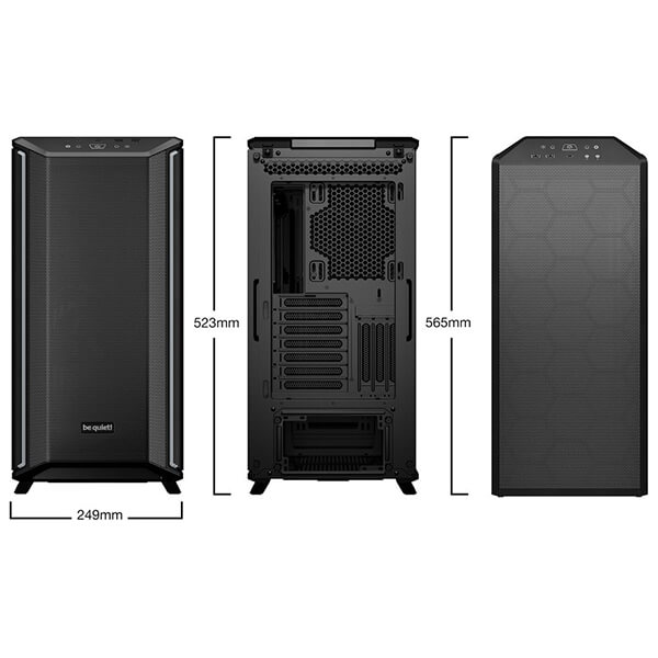 Το Full Tower Dark Base 701 της Be Quiet, διαθέτει 3 προεγκατεστημένους ανεμιστήρες Silent Wings 4 PWM 140 mm για μέγιστη απόδοση. -Η κάρτα γραφικών μπορεί να τοποθετηθεί κάθετα σε μία από τις κάθετες υποδοχές PCI. -Προσφέρει έλεγχο για έως και 8 ανεμιστήρες PWM. -Τα ARGB LED στη μπροστινή πλευρά προσφέρουν πολλά χρώματα και λειτουργίες για να εξατομικεύσετε την εμφάνιση του. Μπορείτε προαιρετικά να συγχρονίσετε τον φωτισμό με τη μητρική σας πλακέτα ή έναν ελεγκτή ARGB. -Το πλαϊνό παράθυρο είναι κατασκευασμένο από φιμέ και σκληρυμένο γυαλί με μαύρες πλευρικές μπάρες.