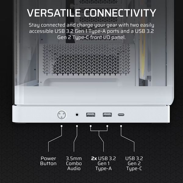 CASE CORSAIR FRAME 4500X RS-R ARGB PANORAMIC TEMPERED GLASS MIDI TOWER WHITEPER.645616PER.645616CORSAIRCORSAIRΚΟΥΤΙΑ - CASESΚατηγορία: ΚΟΥΤΙΑ - CASES •CORSAIR στην κατηγορία ΚΟΥΤΙΑ - CASES Το CORSAIR FRAME 4500X RS-R ARGB είναι ένα mid-tower PC case με εντυπωσιακή πανοραμική γυάλινη πλευρική και μπροστινή επιφάνεια, σχεδιασμένο για να αναδεικνύει το εσωτερικό της κατασκευής σας. Διαθέτει το σύστημα InfiniRail για εύκολη τοποθέτηση ανεμιστήρων και υποστήριξη διπλών 360mm ραδιατόρων, ενώ τα 3 προεγκατεστημένα RS-R ARGB 120mm reverse-rotor fans εξασφαλίζουν αποτελεσματική ψύξη και εντυπωσιακό φωτισμό. Η σχεδίαση περιλαμβάνει πλήρως συμβατό χώρο για κάθετο mounting GPU, arm σταθεροποίησης για αποφυγή sag, καθώς και εκτεταμένες επιλογές διαχείρισης καλωδίων για καθαρή και οργανωμένη κατασκευή.