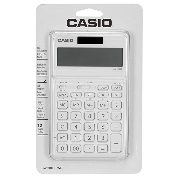 Αριθμομηχανή της Casio 12 ψηφίων σε λευκό χρώμα.