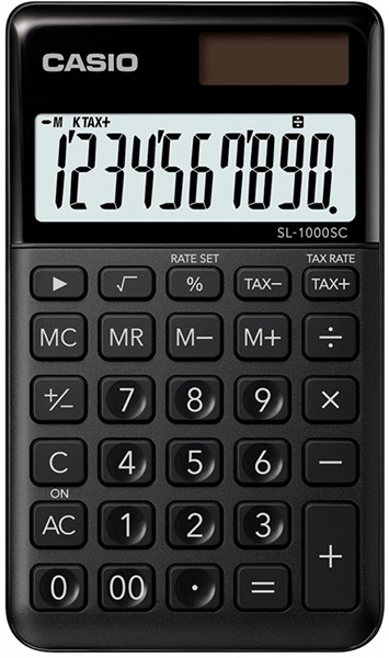 CASIO SL-1000SC-BK BLACKPER.925362PER.925362CASIOCASIOCALCULATORSΚατηγορία: CALCULATORS •CASIO στην κατηγορία CALCULATORS Κομπιουτεράκι CASIO SL-1000SC-BK. Χαρακτηριστικά: - Αυτόματος υπολογισμός της τιμής συν φόρος, τιμή μείον φόρος, έκπτωση, τιμή πώλησης, ποσό φόρου, ποσό έκπτωσης και ποσό περιθωρίου. - Solar & Battery Solar ενέργεια όταν το φως είναι αρκετό, τροφοδοσία απο μπαταρία όταν το φως είναι ανεπαρκές. - Σημάδια εντολών λειτουργίας Ένα σύμβολο (+, -, ?, ?) στην οθόνη δείχνει την κατάσταση λειτουργίας που εκτελείτε αυτήν τη στιγμή. - Key rollover, Οι λειτουργίες Key αποθηκεύονται σε buffer, οπότε τίποτα δεν χάνεται ακόμη και κατά την είσοδο υψηλής ταχύτητας. - Extra Large display, Μεγαλύτερη οθόνη κάνει πιο εύκολη την ανάγνωση περισσότερων δεδομένων. - Πλαστικά πλήκτρα, Σχεδιασμένα και κατασκευασμένα για εύκολη λειτουργία. - Το πλήκτρο "%" ποσοστό κέρδους δίνει γρήγορη πρόσβαση σε τιμές και κέρδη και προσφέρει επίσης πρόσθετα, εκπτώσεις, αναλογίες και τιμές αύξησης / μείωσης. - Το σκληρό κάλυμμα αντέχει σε σκληρή επεξεργασία. • Διαστάσεις (ΒxΠxΥ): 120x71x8.7mm.• Βάρος: 55g.• Χρώμα: Μαύρο.• Εγγύηση: 1 χρόνος. DOA 7 ημερών CASIO SL-1000SC-BK BLACK