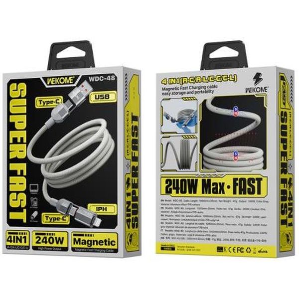 CHARGING CABLE 4 IN 1 WK 240W USB/TYPE-C TO I6/TYPE-C GREY 1M WDC-48 TEL.232487 TEL.232487 WK WK ΚΑΛΩΔΙΟ
