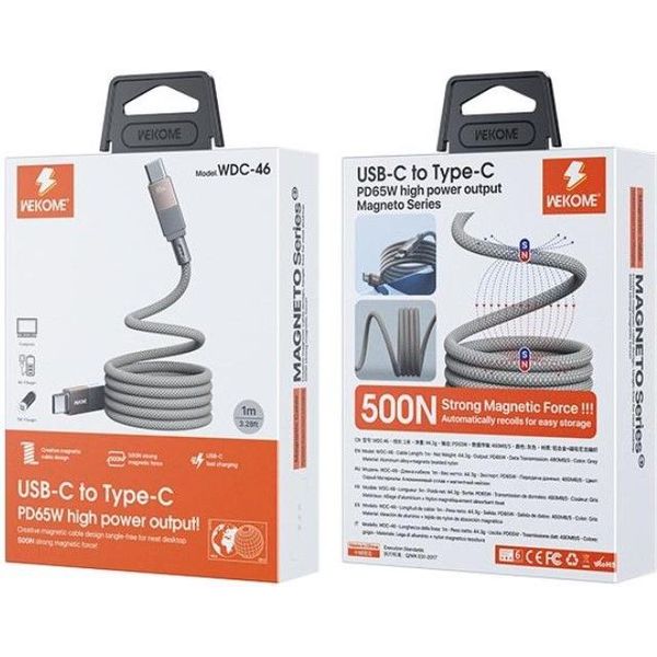 CHARGING CABLE WK 65W TYPE-C/TYPE-C GREY 1M WDC-46 (TEL.232512)