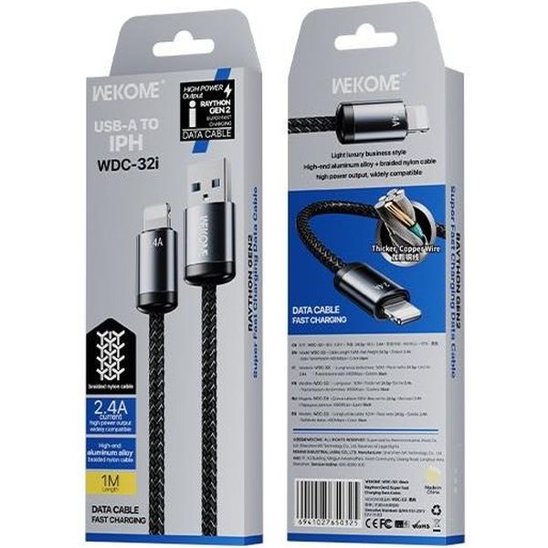 CHARGING CABLE WK I6 BLACK 1M WDC-32 2.4A TEL.232524 TEL.232524 WK WK ΚΑΛΩΔΙΟ
