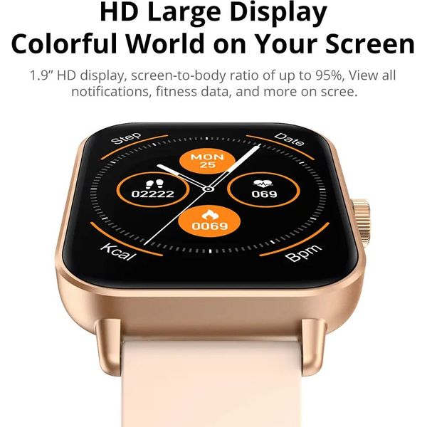 Ευρεία HD οθόνη για καθαρή προβολή Με οθόνη 1.9” και αναλογία οθόνης-σώματος έως 95%, προσφέρει ξεκάθαρη και ευρύχωρη προβολή όλων των ειδοποιήσεων, αθλητικών δεδομένων και λειτουργιών με μια ματιά.