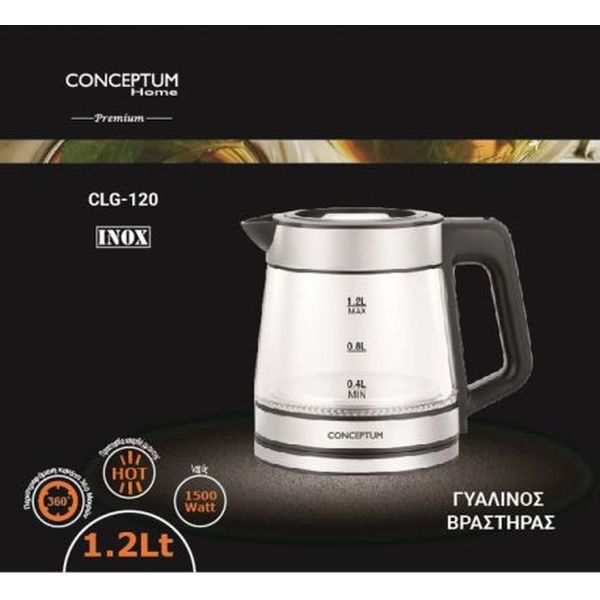 CONCEPTUM HOME ΓΥΑΛΙΝΟΣ ΗΛΕΚΤΡΙΚΟΣ ΒΡΑΣΤΗΡΑΣ INOX 12L 1500W
