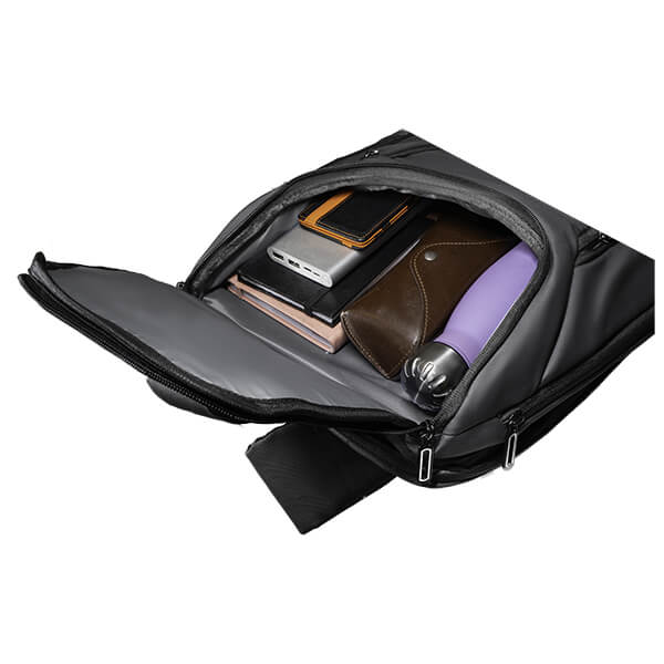 Η κυρίως εσωτερική θήκη ανοίγει από το πάνω μέρος με φερμουάρ σε σχήμα U που σας δίνει εύκολη πρόσβαση σε έναν ενιαίο χώρο διαστάσεων 30x40x10cm. Σε επόμενη ξεχωριστή θήκη πίσω από αυτή, η οποία ανοίγει πλήρως περιμετρικά, θα βρείτε τον ειδικό χώρο όπου μπορεί να φιλοξενηθεί ένα laptop 15.6 ιντσών και άλλα λεπτά αντικείμενα όπως ένα βιβλίο η κάποια περιοδικά. Τέλος δεν λείπει μια κρυφή θήκη ασφαλείας στην πλάτη της τσάντας κατάλληλη για να τοποθετήσετε χρήματα ή στοιχεία ταυτότητας, καθώς όταν φοράτε το σακίδιο αυτή η θήκη ακουμπάει στην πλάτη σας και είναι απροσπέλαστη από κάποιον τρίτο.