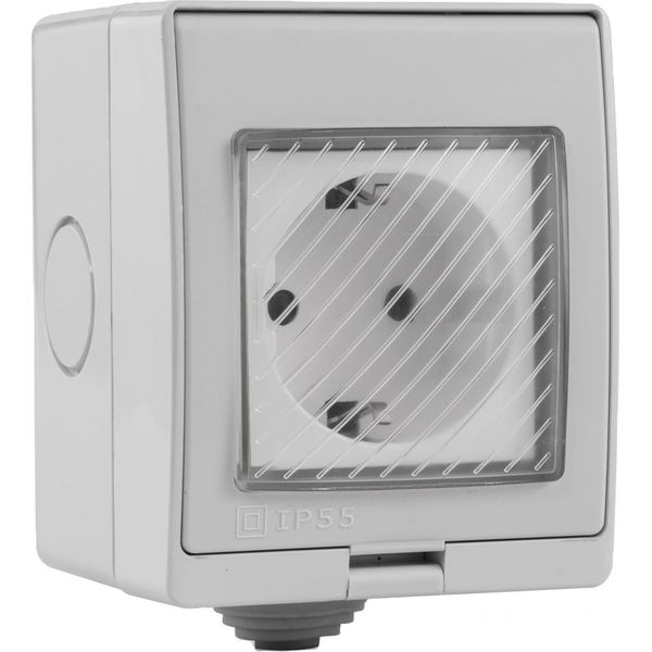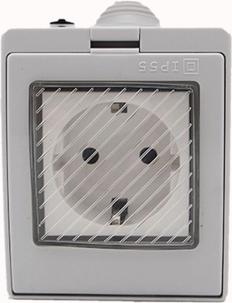 Η πρίζα διαθέτει βαθμό στεγανότητας IP55, προσφέροντας αποτελεσματική προστασία από νερό και σκόνη. Είναι κατάλληλη για χρήση σε εξωτερικούς χώρους ή περιοχές με υγρασία, όπως βεράντες ή υπόγεια.