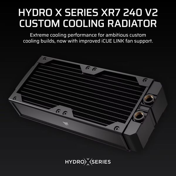 Το CORSAIR Hydro X Series XR7 240 V2 είναι ένα premium ψυγείο υδρόψυξης σχεδιασμένο για enthusiasts που απαιτούν κορυφαία απόδοση σε προηγμένα custom loops. Με εντυπωσιακό πάχος 55mm και πυκνά πτερύγια 25 micron, προσφέρει σημαντικά αυξημένη θερμική επιφάνεια σε σχέση με τα λεπτότερα radiators, διασφαλίζοντας εξαιρετική απαγωγή θερμότητας ακόμη και σε συστήματα με υψηλή θερμική επιβάρυνση, overclocking ή πολλαπλές πηγές θερμότητας. Η συμβατότητα με iCUE LINK καθιστά τη διαχείριση καλωδίων απλή και καθαρή, ενώ η δυνατότητα τοποθέτησης ανεμιστήρων και στις δύο πλευρές το καθιστά ιδανικό για pushpull διαμορφώσεις. Με στιβαρή κατασκευή από χαλκό και ορείχαλκο και ενσωματωμένες Screw Protection Plates για ασφαλή τοποθέτηση, το XR7 240 V2 αποτελεί ιδανική επιλογή για high-end builds που απαιτούν μέγιστη απόδοση και αξιοπιστία. - Υλικό: Χαλκός / Ορείχαλκος