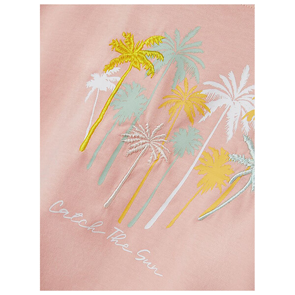 Στο μπροστινό μέρος είναι διακοσμημένο με στάμπα και κέντημα όπου απεικονίζονται πολύχρωμοι φοίνικες και το logo