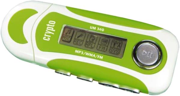 H Cryptο παρουσιάζει ένα flash MP3 player με μικρό μέγεθος και κομψό design. Σας επιτρέπει να αναπαράγετε αρχεία MP3/WMA να ηχογραφήσετε την φωνή σας με το ενσωματωμένο μικρόφωνο που διαθέτει και να ακούσετε τους αγαπημένους σας Ραδιοφωνικούς σταθμούς. Στα επιπλέον χαρακτηριστικά του συγκαταλέγεται το Ελληνικό μενού και η πρόσβαση σας σε αυτό μόνο με ένα πλήκτρο. Το UM 360 ήρθε για να γίνει ένα κομμάτι της καθημερινής σας ζωής κάνοντας την πιο διασκεδαστική και πιο ευχάριστη.