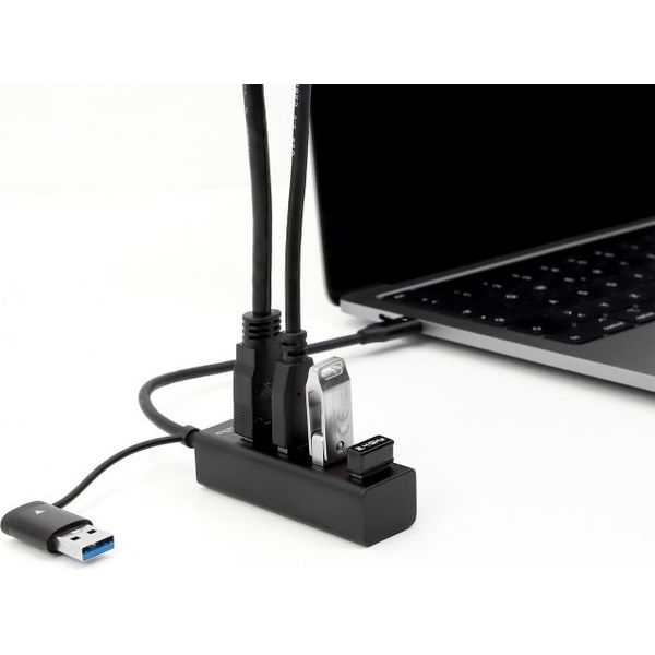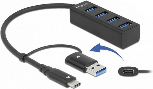 Χάρη στον ειδικά σχεδιασμένο αντάπτορα, ο κόμβος της Delock μπορεί να συνδεθεί εύκολα τόσο σε σύγχρονες συσκευές με θύρα USB Type-C όσο και σε παλαιότερες συσκευές που διαθέτουν μόνο θύρα USB Type-A. Ο αντάπτορας είναι ενσωματωμένος στο καλώδιο ώστε να μην χάνεται.