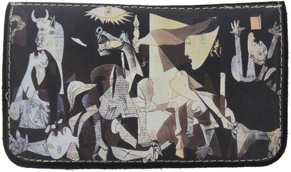 Δερμάτινη, καστόρινη, χειροποίητη καπνοθήκη από την εταιρεία "ON AND OFF". Διαθέτει εκτύπωση στο μπροστινό μέρος πάνω σε δέρμα, με μοναδικό χειροποίητο τρόπο,"GUERNICA" του Pablo Picasso. Έχει μαύρο χρώμα, κλείνει με μαγνητικά κουμπιά και διαθέτει θήκη για τον καπνό, τα φιλτράκια και τα χαρτάκια. Στο πίσω μέρος έχει θήκη που κλείνει με φερμουάρ.Company info
