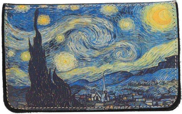 Δερμάτινη, καστόρινη, χειροποίητη καπνοθήκη από την εταιρεία "ON AND OFF". Διαθέτει εκτύπωση στο μπροστινό μέρος πάνω σε δέρμα, με μοναδικό χειροποίητο τρόπο, με το αντίγραφο του πίνακα "STARRY NIGHT" του Vincent van Gogh. Έχει μαύρο χρώμα, κλείνει με μαγνητικά κουμπιά και διαθέτει θήκη για τον καπνό, τα φιλτράκια και τα χαρτάκια.Company info