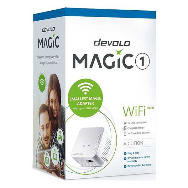 Το Magic 1 WiFi mini συνδυάζει το πιο σύγχρονο Internet Powerline, την πιο απλή λειτουργικότητα και Mesh σε έναν διακριτικό προσαρμογέα και έτσι αποτελεί την ιδανική πρώτη σας επαφή με την οικιακή δικτύωση. Χάρη στο Powerline, το σήμα Internet μεταφέρεται μέσω του δικτύου παροχής ρεύματος με έως και 1.200 Mbps ακριβώς στην πρίζα, η οποία γίνεται το νέο hotspot WiFi. Ο μικρός προσαρμογέας συμβάλλει αμέσως σημαντικά στο ομαλό σερφάρισμα, το gaming και το streaming από φορητές συσκευές. Η θύρα LAN παρέχει σύνδεση σε Smart TV, υπολογιστές ή εκτυπωτές. Έτσι απλά αποκτάτε καλύτερο Internet στο σπίτι σας αξιόπιστα, βιώσιμα με τεχνολογία G.hn και χωρίς πρόσθετη τοποθέτηση καλωδίων. Τα devolo Magic χρησιμοποιούν την καινοτόμα τεχνολογία G.hn, η οποία προσφέρει τις υψηλότερες ταχύτητες μετάδοσης. Για αυτόν τον λόγο, οι συσκευές αποδίδουν πλήρως μόνο σε περιβάλλον αμιγώς G.hn, όταν δεν χρησιμοποιούνται παράλληλα άλλοι προσαρμογείς PLC. Σερφάρισμα υψηλής ταχύτητας. Με έως και 1.200 Mbps είναι παντού: το μαγικό δίκτυο Mesh WiFi της devolo. Βυθιστείτε σε βίντεο YouTube, κάντε stream μουσική, βουτήξτε σε παιχνίδια online είτε από τον υπολογιστή ή το tablet. Το devolo Magic 1 WiFi παρέχει ροή Internet ακριβώς εκεί που βρίσκεστε κάθε φορά. Virtual Reality. Το devolo Magic 1 WiFi σάς μεταθέτει κατευθείαν στο μέλλον. Ανακαλύψτε εικονικούς κόσμους με VR gaming κορυφαίας κατηγορίας. Μετατρέψτε το σπίτι σας σε ένα μαγικό ναό πολυμέσων με εκπληκτικά σταθερό και απίστευτα γρήγορο Mesh multi-room WiFi. MUHD Streaming. Με το devolo Magic 1 WiFi κάνετε stream τις μεγαλύτερες κινηματογραφικές ταινίες με την καλύτερη εικόνα στα απίστευτα 8K. Και όχι μόνο από τη Smart TV στον καναπέ σας. Το δίκτυο Mesh WiFi επιτρέπει τη ροή Internet παντού έως το tablet στον κήπο. Χαρακτηριστικά: -Ασφαλής κωδικοποίηση με το πάτημα ενός κουμπιού: 128 Bit AES για τη σύνδεση με Powerline και WPA2. -Απλά και έξυπνα: Δυνατότητα ελέγχου του προσαρμογέα μέσω της εφαρμογής Home Network. -Πρακτικές πρόσθετες λειτουργίες: Σύνδεση επισκέπτη, συγχρονισμό και Config-Sync. -Σταθερό οικιακό δίκτυο: Αξιόπιστο σήμα WiFi χάρη στο πρότυπο 802.11n.Ταχύτητα Overline: 1200 Mbps.Μέγιστη Ταχύτητα Wireless: 300 Mbps.Θύρες Ethernet: 1.Υποστηριζόμενα λειτουργικά συστήματα: from Android 5.0, from Windows 7, from Mac OS X 10.9, from iOS 9 , from Ubuntu-Linux 14.04.Περιεχόμενα συσκευασίας: 1x devolo MAGIC 1 WiFi Mini Adapter, 1 εγχειρίδιο χρήσης. Εγγύηση: 2 χρόνια. DOA 7 ημερών