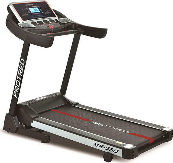 O ProTred MR-550 είναι ένας αξιόπιστος διάδρομος, εξοπλισμένος με κινητήρα 2.0 HP και προσφέρει ταχύτητα έως 14 km/h, κλίση μηχανικά ρυθμιζόμενη σε 6 επίπεδα και αντικραδασμικό σύστημα ισχυρών αναρτήσεων. -Η ενσωματωμένη οθόνη LCD του παρέχει πέντε πεδία μπλε οπίσθιου φωτισμού, ώστε να παρακολουθείτε όλα τα σημαντικά δεδομένα της προπόνησης σας. -Διαθέτει θύρα εισόδου MP3, θύρα φόρτισης USB , δυνατότητα μέτρησης καρδιακών παλμών με αισθητήρες χειρός και ενσωματωμένα ηχεία στην κονσόλα. -Το αντικραδασμικό σύστημα του MR-550 αποτελείται από δύο ισχυρά ελατήρια, στο εμπρός, κάτω μέρος του δαπέδου, ώστε να απορροφηθούν και να εκτονώνονται οι κραδασμοί κατά τη διάρκεια της άσκησης. -Σας προσφέρει επίσης ένα πρόσθετο σύστημα λίπανσης του τάπητα, πλέον του γνωστού τρόπου λίπανσης με σπρέυ σιλικόνης. Αφαιρέστε το προστατευτικό του στομίου που θα βρείτε πάνω στο κάλυμμα του μοτέρ και θα βρείτε το σωληνάριο λίπανσης, όπου μπορείτε να ρίξετε το λιπαντικό έως 90ml στο εσωτερικό δοχείο. -Ο διάδρομος αναδιπλώνεται εύκολα ακόμη και με ένα χέρι και ασφαλίζει με υδραυλικό αμορτισέρ. Κατόπιν μπορείτε να τον αποθηκεύσετε εύκολα.