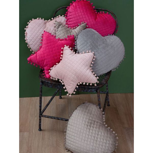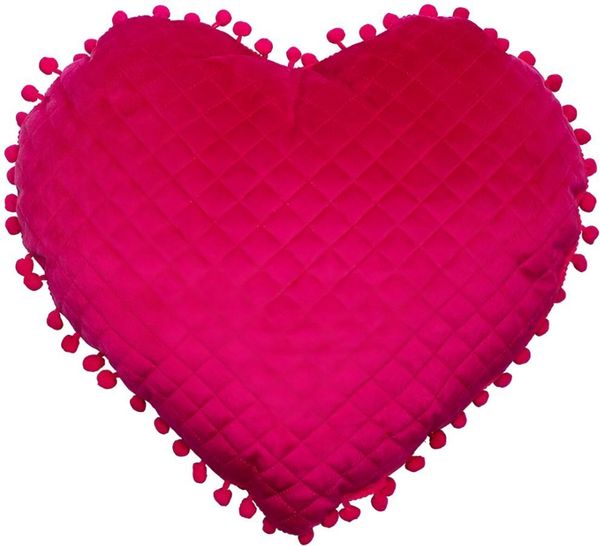 Διακοσμητικό μαξιλαράκι σε σχήμα καρδιάς από τη συλλογή Elwin της εταιρείας Palamaiki Home. Έρχεται σε βελουτέ υφή, διακοσμημένο με φουντίτσες περιμετρικά και σε απόχρωση φούξια του πάθους. Με σύνθεση από velvet μικροϊνες 85 γραμμαρίων ανά m2 και με εσωτερική γέμιση από πολυεστέρα.