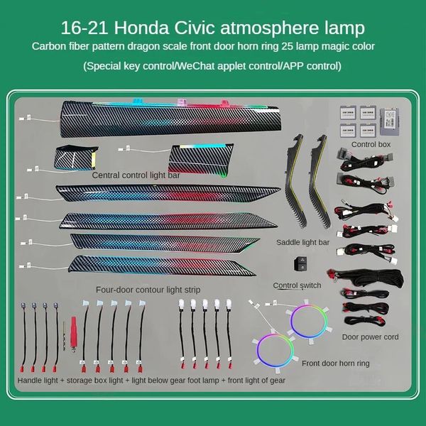 Αρχική > Ήχος - Εικόνα > Car Audio > DIQ AMB. HONDA CIVIC X FULL MOD 16-21 DIQ AMB. DYNAMIC LIGHT HONDA CIVIC MOD 16-21 23 LIGHTS FULLKIT