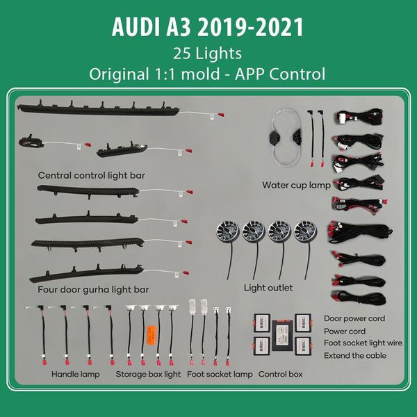 DIQ AMBIENT AUDI A3 8V-2 DIQ AMBIENT LIGHT AUDI A3 MOD 2019-2021 FACELIFT, 25 LIGHTS WITH AIRVENT
