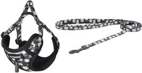 DOG SET DOGNESS HARNESS AND LEASH (DAISY BLACK) (PER.285529)