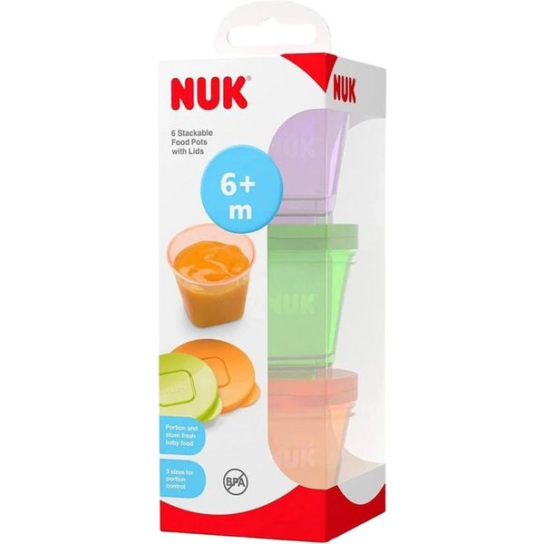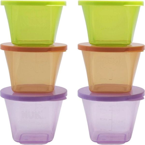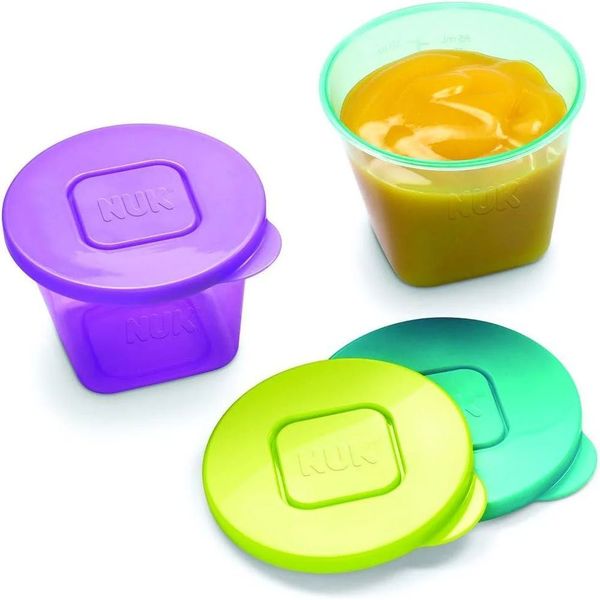 Τα δοχεία συντήρησης NUK Fresh Foods είναι ιδανικά για να τα γεμίζετε με φρεσκομαγειρεμένο χυλό, τον οποίον μπορείτε αμέσως μετά να συντηρήσετε στο ψυγείο ή και να τον καταψύξετε. Τα δοχεία μπορούν να τοποθετηθούν το ένα επάνω στο άλλο και έτσι να εξοικονομήσετε πολύτιμο χώρο. Τα δοχεία έχουν στρογγυλό σχήμα και