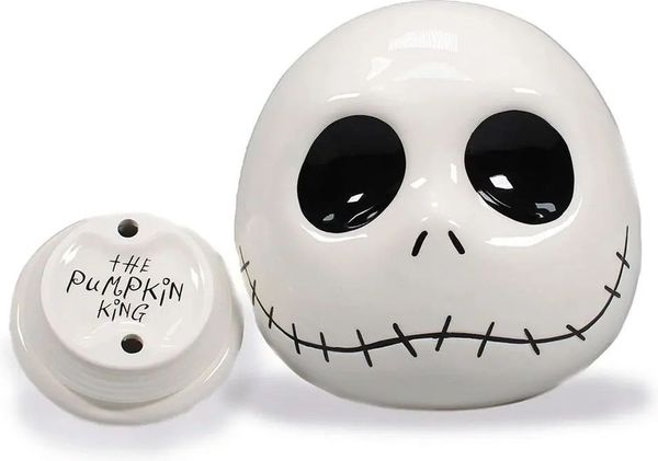 Μοναδικό κεραμικό κουτί για μπισκότα με τη μορφή του Jack Skellington από την υπέροχη ιστορία Χριστουγεννίατικος εφιάλτης του Tim Burton, για να αποθηκεύσετε με στιλ τις αγαπημένες σας λιχουδιές και να δώσετε ξεχωριστό στιλ στον χώρο σας. Διαστάσεις: 17 x 17 x 17,8 εκ. Υλικό: Κεραμικό.