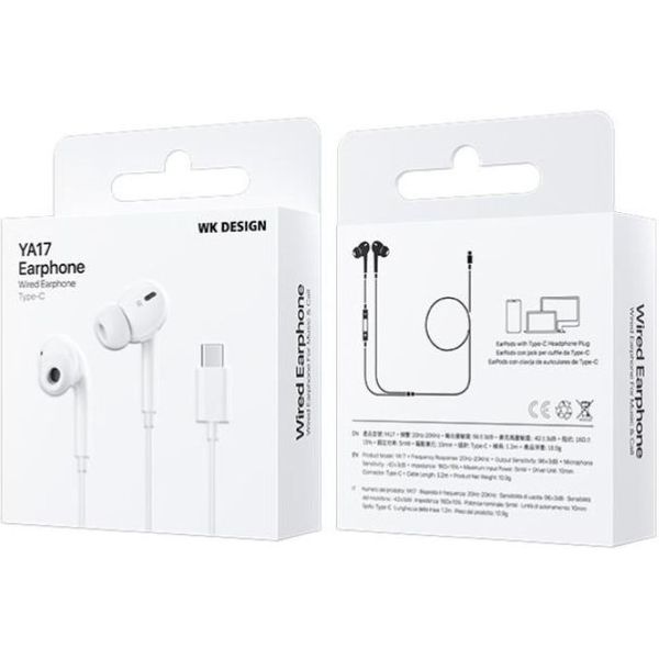 EARPHONE WK YA17 TYPE-C WHITE (TEL.232550)