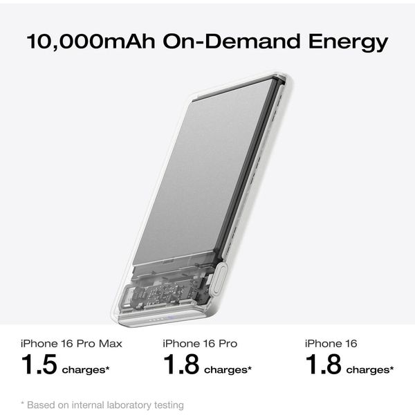 - Χωρητικότητα 10.000 mAh παρέχει έως και δύο πλήρεις φορτίσεις smartphone.