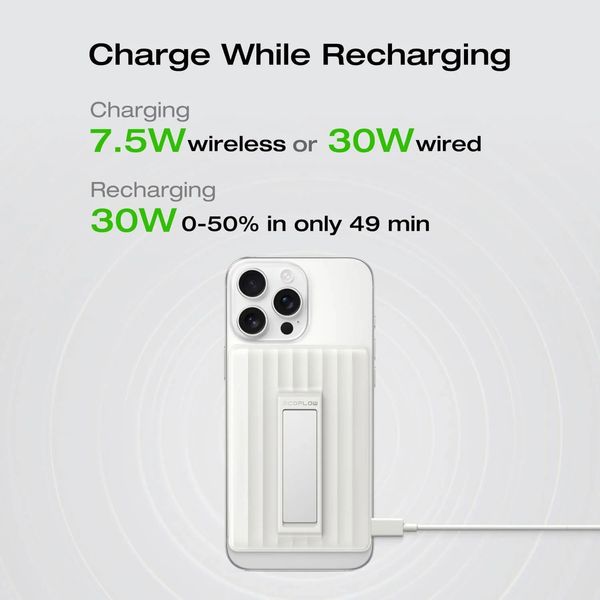 ECOFLOW στην κατηγορία POWERBANKS Το EcoFlow Rapid Mag Power Bank 10.000 mAh είναι ένας εξελιγμένος φορητός φορτιστής με μαγνητική ασύρματη φόρτιση έως 7.5W, σχεδιασμένος για χρήστες που αναζητούν πρακτικότητα και ασφάλεια. Διαθέτει τεχνολογία X-Cooling για σταθερή θερμοκρασία, ισχυρούς μαγνήτες με 11N Grip για σταθερή πρόσφυση (Zero Drops) και ενσωματωμένη βάση στήριξης 60° για άνετη χρήση κατά τη φόρτιση.