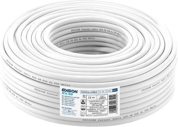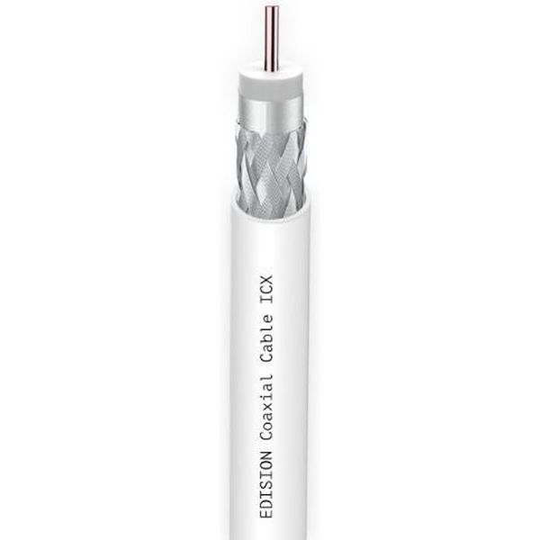 Το ομοαξονικό καλώδιο Edision ICX-50 CCS AL Eca PVC σε λευκό χρώμα και μήκος 50 μέτρων είναι κατάλληλο για εσωτερική χρήση σε διανομή σήματος επίγειας ψηφιακής και δορυφορικής τηλεόρασης, καθώς και για CCTV. Ιδανικό για επέκταση καλωδίου κεραίας, προσθήκη τμήματος ή αντικατάσταση φθαρμένου, εξασφαλίζοντας αξιόπιστη σύνδεση μεταξύ κεραίας και τηλεόρασης. Ο κεντρικός αγωγός από επιχαλκωμένο σίδηρο (CCS) παρέχει υψηλή αγωγιμότητα, ενώ η διπλή θωράκιση Class A από αλουμίνιο προστατεύει από παρεμβολές. Το εξωτερικό περίβλημα από PVC προσφέρει ευκαμψία και προστασία από περιβαλλοντικές επιδράσεις.