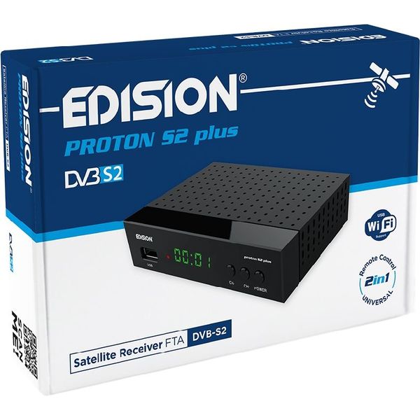 Ο PROTON S2 plus είναι ο νέος δορυφορικός δέκτης της EDISION, προσφέροντας τη δυνατότητα λήψης δορυφορικών καναλιών DVB-S & DVB-S2 με εξαιρετική ταχύτητα και απόδοση. Διαθέτει νέο μενού OSD και επεξεργαστή νέας γενιάς που εξασφαλίζει ταχύτατη εναλλαγή στα κανάλια και στο μενού, ενώ μπορεί να αποθηκεύσει έως και 6000 κανάλια. Η λειτουργία USB WiFi με υποστήριξη MTK7601 και η θύρα Ethernet προσφέρουν πρόσβαση σε web εφαρμογές και ενσωματωμένο media player για αναπαραγωγή πολυμέσων.
