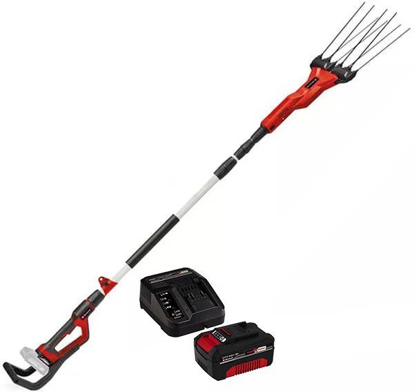 Ο ασύρματος αναδευτήρας ελιών/οπωροφόρων δέντρων Einhell GE-FS 18/53 Li-Solo κάνει τη συγκομιδή παιχνιδάκι. Είτε οπωροφόρα είτε ελαιόδεντρα η ελαφριά, εύχρηστη συσκευή με ισχυρή μπαταρία, τινάζει κάθε καρπό από τα κλαδιά. -Ο ασύρματος αναδευτήρας φρούτων/ελαιόδεντρων είναι μέρος της οικογένειας Power X-Change, όπου όλες οι μπαταρίες, οι συσκευές και οι φορτιστές μπορούν να συνδυαστούν με ευελιξία. -Η χτένα συγκομιδής λειτουργεί με σταθερή πλευρική κίνηση και πλάτος εργασίας μεταξύ 28 και 53 cm μέσω των κλαδιών. -Τα 8 στιβαρά, μήκους 31 cm ανθρακονήματα τινάζουν τα φρούτα ή τις ελιές από τα κλαδιά. Η ταχύτητα αυτής της κίνησης μπορεί να ρυθμιστεί μέσω ενός περιστροφικού τροχού. -Τα μεμονωμένα δόντια άνθρακα είναι εύκολο να ανταλλάσσονται. -Για να φτάσετε εύκολα σε ακόμα ψηλότερα κλαδιά, το συνολικό μήκος της ηλεκτρικής θεριζοαλωνιστικής μηχανής μπορεί να ρυθμιστεί μεταξύ 220 και 310 cm μέσω τηλεσκοπικής λειτουργίας. -Επιπλέον, η πίσω πρόσθετη λαβή διευκολύνει την πρόσβαση σε ψηλά κλαδιά. -Για χρονοβόρα εργασία, η λειτουργία συνεχούς λειτουργίας και ο άνετος χειρισμός παρέχουν ανακούφιση χάρη στις ειδικές επιφάνειες μαλακής λαβής. -Ο ρυθμιζόμενος ιμάντας μεταφοράς επιτρέπει τη βέλτιστη κατανομή βάρους. -Περιλαμβάνεται μια πρακτική βάση τοίχου για αποθήκευση εξοικονόμησης χώρου. -Η παράδοση δεν περιλαμβάνει μπαταρία ή φορτιστή, διατίθενται χωριστά. Τύπος κινητήρα: Brush motor.Τάση κινητήρα: 18 V.Αριθμός ράβδων: 8 τμχ.Διάμετρος ράβδων: 5 mm.Μήκος ράβδων: 31 cm.Yψος εργασίας με τηλεσκοπική λειτουργία: 182 cm.Υψος εργασίας χωρίς τηλεσκοπική λειτουργία: 92 cm.Πλάτος εργασίας - χτένα συγκομιδής: 28- 53 εκ.Βάρος: 4,35 Kg.Εγγύηση: 2 χρόνια.