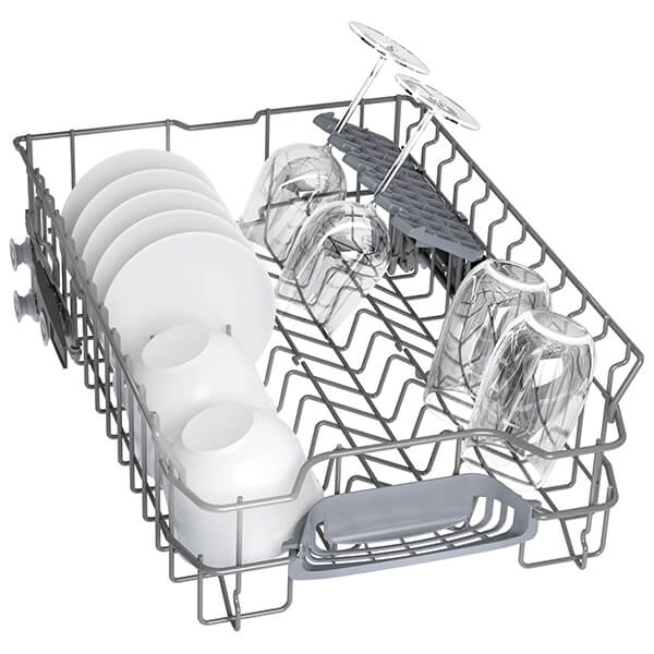 Διπλοί βραχίονες ψεκασμού στο πάνω καλάθι. Με τους διπλούς βραχίονες ψεκασμού στο πάνω καλάθι, όλα τα αντικείμενα που τοποθετείτε εκεί πλένονται και ξεβγάζονται ομοιόμορφα, από άκρη σε άκρη και με την ιδανική πίεση νερού, κάθε φορά. Πρόκειται για μια μοναδική πρωτοπορία, ιδιαίτερα σε σύγκριση με τα πλυντήρια πιάτων που διαθέτουν μόνο ένα βραχίονα ψεκασμού του νερού. Είναι ειδικά μελετημένο και σχεδιασμένο, ώστε εσείς να απολαμβάνετε τέλεια καθαρά ποτήρια και κουζινικά, κάθε φορά, χωρίς κόπο και με εγγυημένα αστραφτερά αποτελέσματα πάντα.