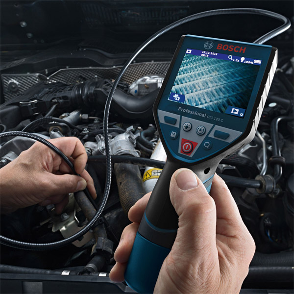 • Τάση μπαταρίας: 12 V. • Μέγεθος οθόνης: 3.5 ". • Ανάλυση οθόνης: 320 x 240 px. • Διάμετρος κεφαλής κάμερας: 8.5 mm. • Μήκος του καλωδίου της κάμερας: 120 cm. • Αριθμός βαθμίδων του φωτισμού φωτοδιόδου (LED): 3. • Βάρος: 0.64 Kg. • Περιεχόμενα συσκευασίας: Προσαρμογέας αλκαλικής μπαταρίας AA, Καλώδιο κάμερας για GIC 120 C Φ 8, 5 mm 120 cm μήκος, ’γκιστρο, μαγνήτης, καθρέφτης, Ένθετο L-BOXX, Καλώδιο Micro-USB, Κάρτα MicroSD 4GB, 4 μπαταρίες 1, 5 V LR6 (AA). • Εγγύηση: 1 χρόνος.
