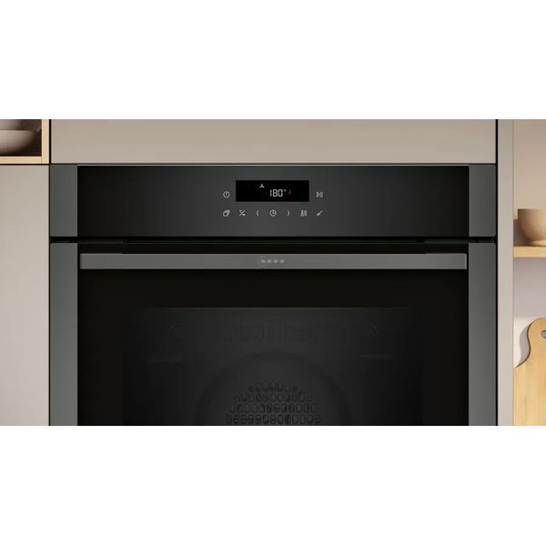 Ο εντοιχιζόμενος φούρνος NEFF B2ACJ7AG0 είναι σχεδιασμένος για υψηλή απόδοση και ευελιξία μαγειρέματος. Με την τεχνολογία CircoTherm, επιτρέπει ταυτόχρονο ψήσιμο σε έως και τρία επίπεδα χωρίς ανάμιξη των ταψιών. Διαθέτει πυρολυτικό αυτοκαθαρισμό σε συνδυασμό με λειτουργία Easy Clean, για εύκολο και βαθύ καθαρισμό. Η χρήση είναι άνετη και σύγχρονη μέσω LED Touch Control οθόνης, ενώ η ενεργειακή κλάση A+ εξασφαλίζει οικονομία στην κατανάλωση.