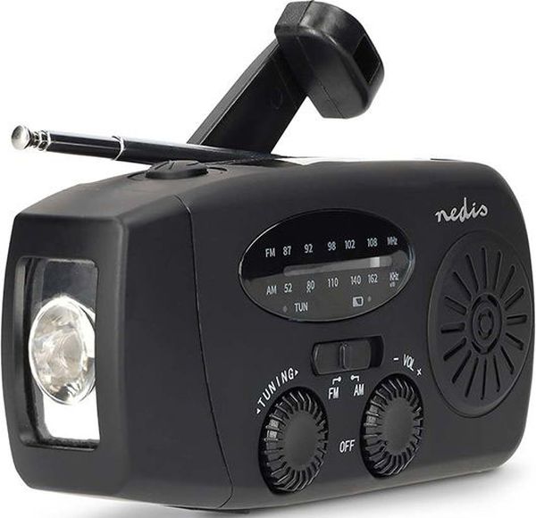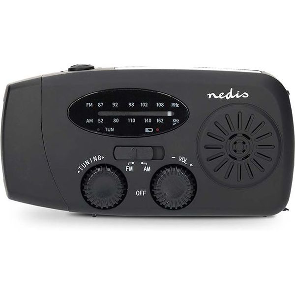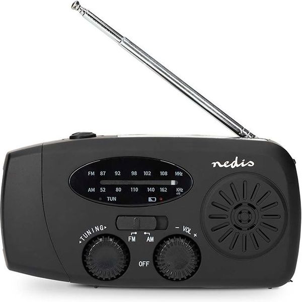 Επαναφορτιζόμενο, αναλογικό AM / FM ραδιόφωνο έκτακτης ανάγκης με ηλιακό πάνελ, μανιβέλα χειρός, φακό και powerbank. Το ραδιόφωνο έκτακτης ανάγκης AM/FM με μανιβέλα της Nedis είναι η ιδανική λύση για να παραμένετε πάντα ενημερωμένοι, ακόμα και χωρίς ρεύμα ή σύνδεση στο διαδίκτυο. Με αξιόπιστη λήψη AM/FM, λαμβάνετε σημαντικές ειδήσεις, δελτία καιρού και ειδοποιήσεις έκτακτης ανάγκης όπου κι αν βρίσκεστε.