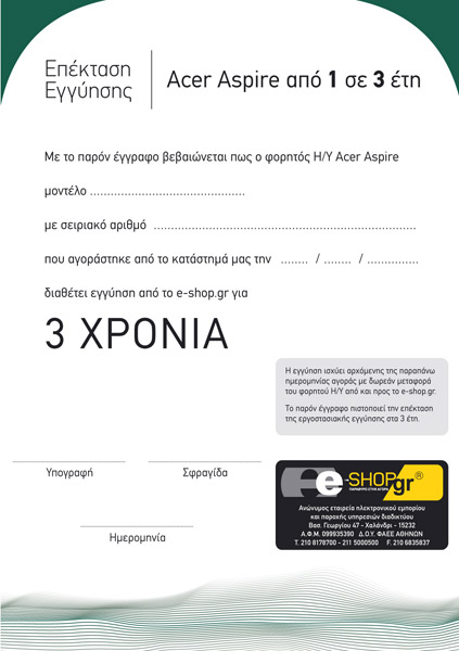 Αρχική > Υπολογιστές > Επεκτάσεις Εγγυήσεων > ΕΠΕΚΤΑΣΗ ΕΓΓΥΗΣΗΣ ACER ASPIRE/EXTENSA/EMACHINE ΑΠΟ 2 ΣΕ 4 ΕΤΗ